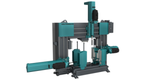 - Machine portal in robust welded construction incorporating two horizontal and one vertical drilling unit